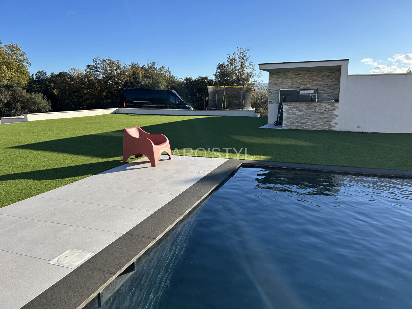 Disponible en dimensions généreuses de 130x33x3 cm, cette margelle se prête à des aménagements extérieurs modernes, particulièrement ceux comprenant des piscines miroir. Elle se marie avec des revêtements de plage en bois et s’adapte parfaitement aux projets contemporains, tout en offrant un contraste raffiné et élégant. Pour un rendu encore plus soigné, nous recommandons de décliner cette pierre naturelle dans les angles rentrants, pour un effet harmonieux et moderne.